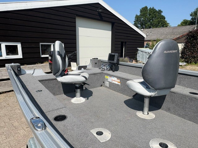 2 high back visstoelen beide draaibaar , de bestuurdersstoel zit ook op een schuifrail, de passagiersstoel is, zoals op de foto waarop de boot al varende zichtbaar is, dus ook in hoogte verstelbaar.