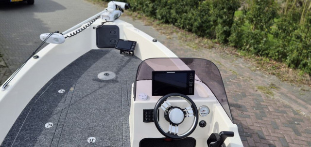Voorop is plaats voor een frontroller , de boegplaat van MinnKota is nog gemonteerd