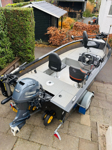 Voor 6000 euro op te halen. Mooie set, veel mee gevist, ook op Randmeren t/m windkracht 4. Aankoppelen en vissen..